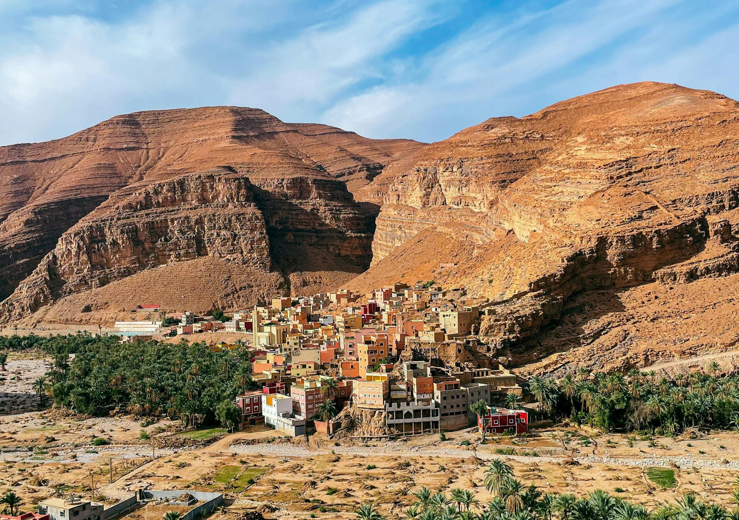 Etapa per resseguir els contraforts de l’Antiatles fins a Tata. Hi descobrirem engorjats on s’arreceren els llogarrets i les hortes dels palmerars. L’arquitectura local ens dona testimoni de les fondes arrels amazigues d’aquesta regió, tot enmig d’una potent geologia muntanyosa que ja s’aboca al Sàhara. Arribada a Tata, allotjament, sopar i nit a l’hotel.